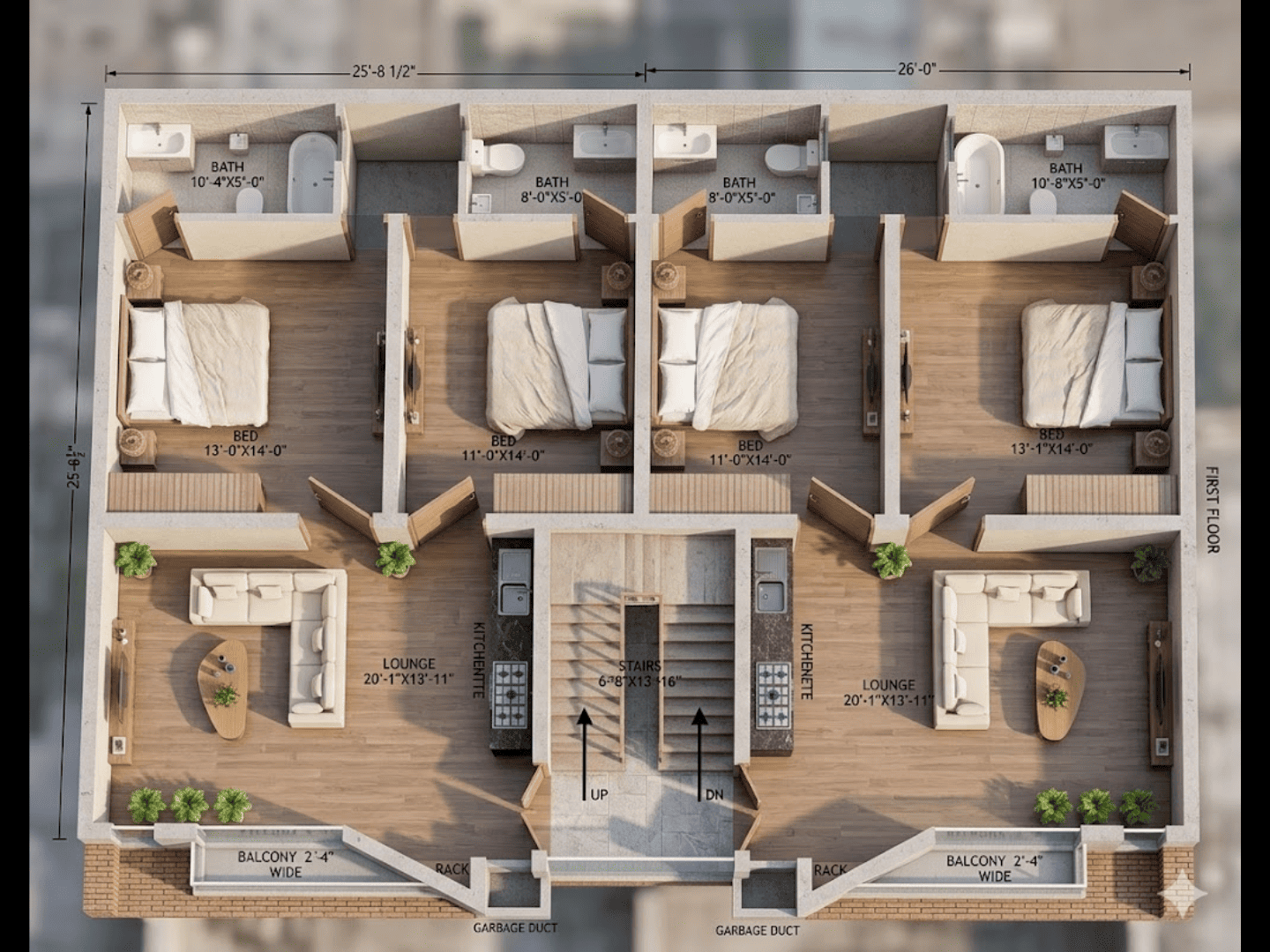 • Modern 1000 sqft town houses